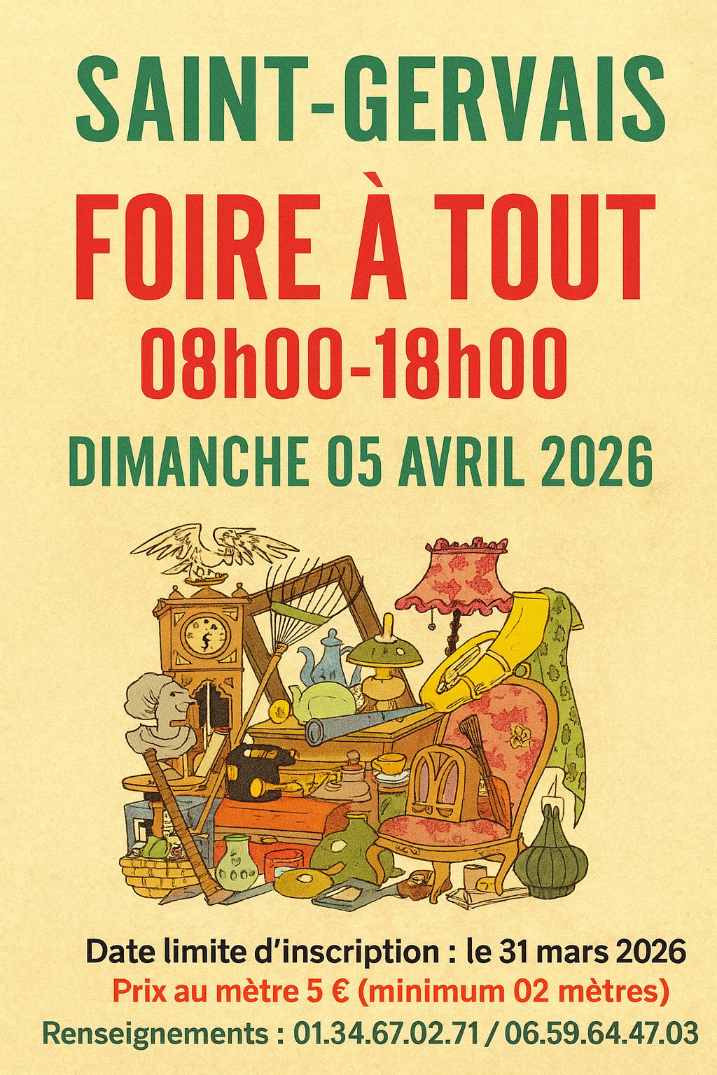 Cette année la foire à tout vous donne rendez-vous le dimanche 05 avril de 08h00-18h00